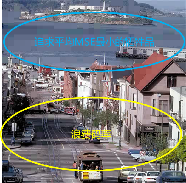 | 传统的编码方案:MINAVE (宏块平均MSE最小化),bits=500050。 | 感知质量一致化优化方案CPQ(宏块SSIM一致),bits=499955。 |