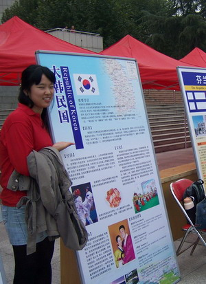 Jane (“小魏”),来自美国,聪颖可爱,国际文化节这天,她是美国展板前的志愿者 国际文化节文艺晚会上表演的小魏,活泼娇俏