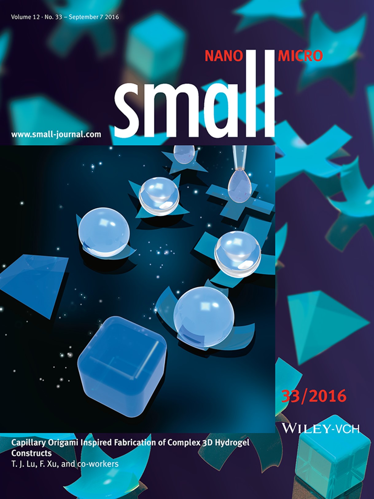 [3] Moxiao Li, Qingzhen Yang, Hao Liu, Mushu Qiu, Tian Jian Lu*, Feng Xu*. Capillary origami inspired fabrication of complex 3D hydrogel constructs. Small, 2016, 12(33), 4492-4500. (IF: 13.3)