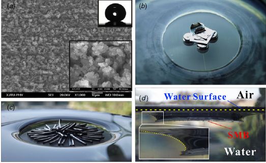 [95]. Yong, Jiale; Yang, Qing; Chen, Feng;* Zhang, Dongshi; Du, Guangqing; Si, Jinhai; Yun, Feng; Hou, Xun A Bioinspired Planar Superhydrophobic Microboat. Journal of Micromechanics and Microengineering, 2014, 24(3): 035006.