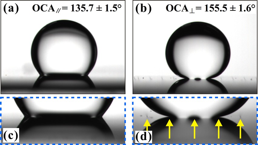 [100]. Yong, Jiale; Yang, Qing; Chen, Feng;* Zhang, Dongshi; Farooq, Umar; Du, Guangqing; Hou, Xun A Simple Way to Achieve Superhydrophobicity, Controllable Water Adhesion, Anisotropic Sliding, Anisotropic Wetting Based on Femtosecond-laser-induced Line-patterned Surfaces. Journal of Materials Chemistry A, 2014, 2(15): 5499-5507.