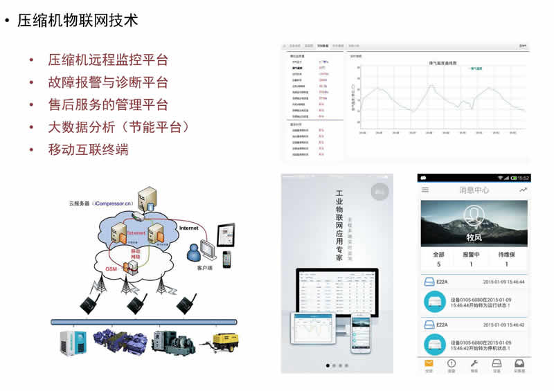 基于物联网技术的工业设备智能应用平台(以下简称平台)以物联网M2M(Machine to Machine/Man)技术为核心,实现以机器终端智能交互为核心的、网络化的应用和服务。平台对M2M的“智能化机器、M2M硬件、通信网络、中间件和应用”五个关键部分进行架构,实现对工业设备如压缩机、鼓风机、发电机等的智能监控、节能管理和网络化管理服务。本项目在已有技术条件下,研究开发具有自主产权的工业物联网应用技术,构建面向制造企业的多主体按需使用的云服务平台,形成支持云服务平台的运行和使用的标准规范,推动工业企业服务模式的创新,促进生产型企业向服务型企业转型。