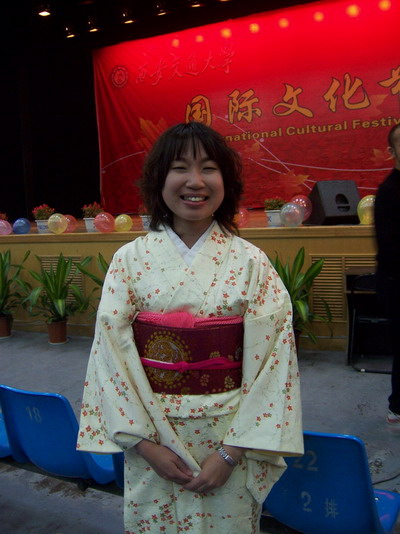 日本同学井尻麻由美,和服很漂亮吧! 日本留学生的集体表演,蔚为壮观