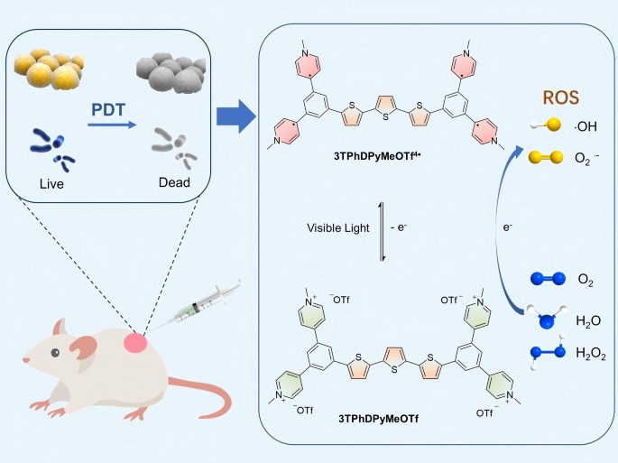 Enhancing the ROS generation via polypyridine for bacteria imaging and photodynamic therapy.